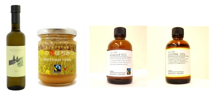 ・有機エクストラバージン・オリーブオイル ・野の花はちみつ ・アーモンドオイル 60ml ・ホホバオイル 60ml ※フェアトレード認証は受けていません。