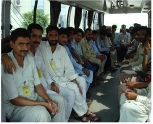 ●労働者への無料送迎の実施 工場で働く人の中には、1、2時間かけて通勤する人が多く います。労働者が安全に通勤し、仕事に集中して取り組むことができるよう、 工場で働く労働者への無料の送迎を提供しています。 遠方から通う労働者が交通費と通勤時間を削減できるようになりました。 約90人の労働者が利用しています。